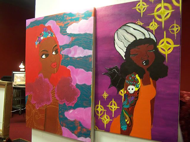 If you like the artwork in the room below, check-out Marissa Arterberry at http://soulgoddess.com/ . I think this young lady is very talented and has something to say through her art...Her work is very youthful,vibrant and happy. Imagine one of her painting in a baby girls room...Halle Berry could use one of her painting in her baby's nursery...the colors are great...I would love to design a nursery around these colors...The artist works out of Cali.