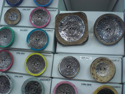 I fell in love with these buttons made of coconut shells and hammered metal...they started at $6.00 bucks a button...