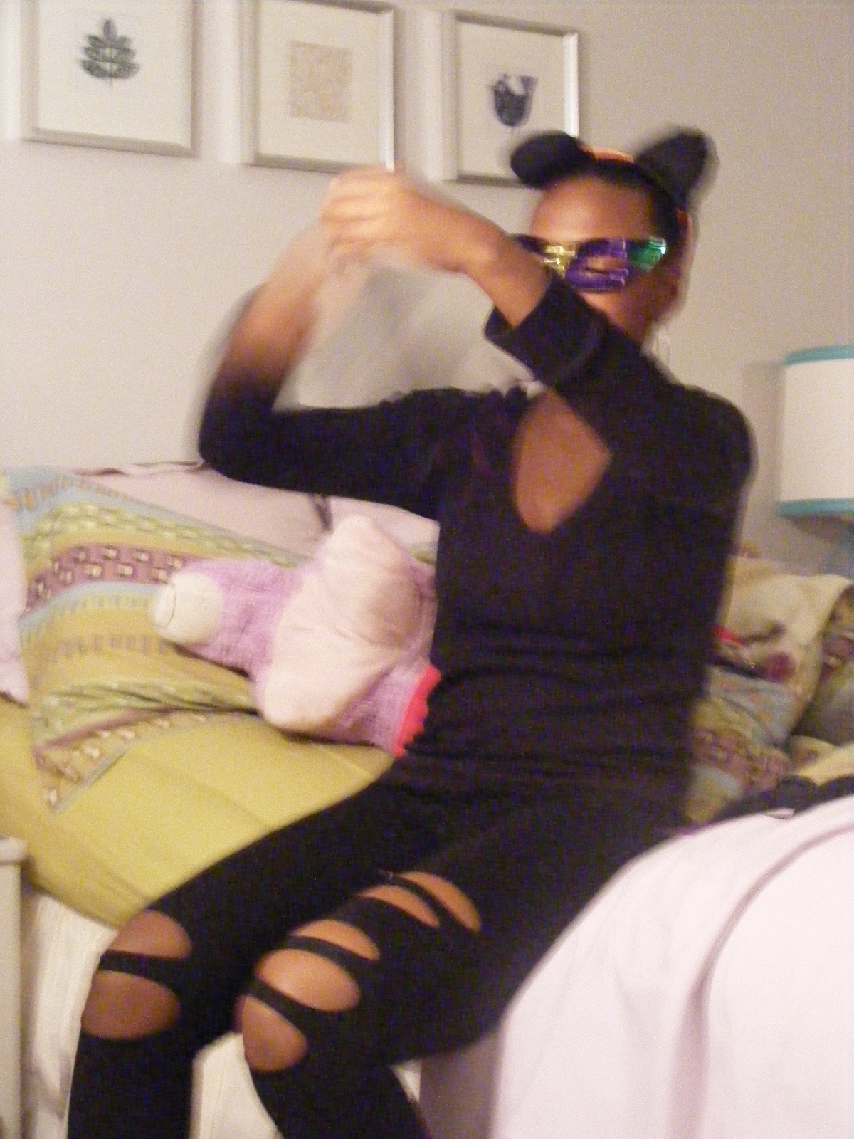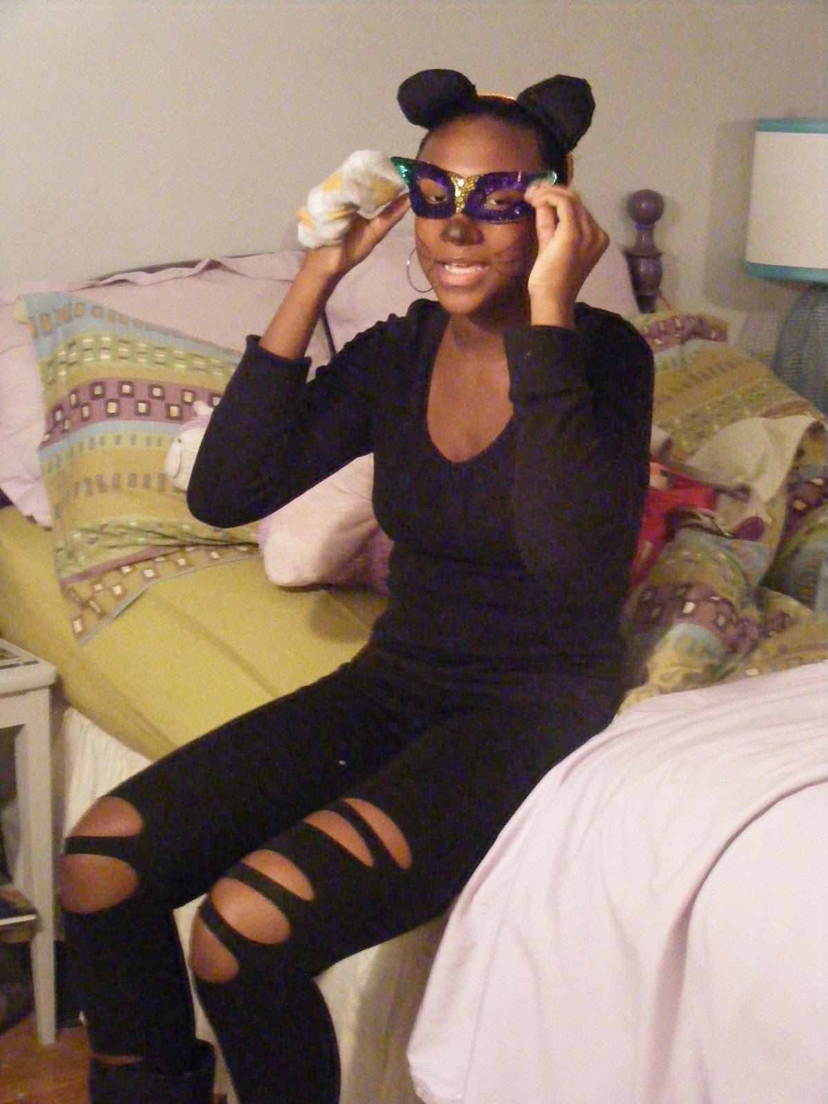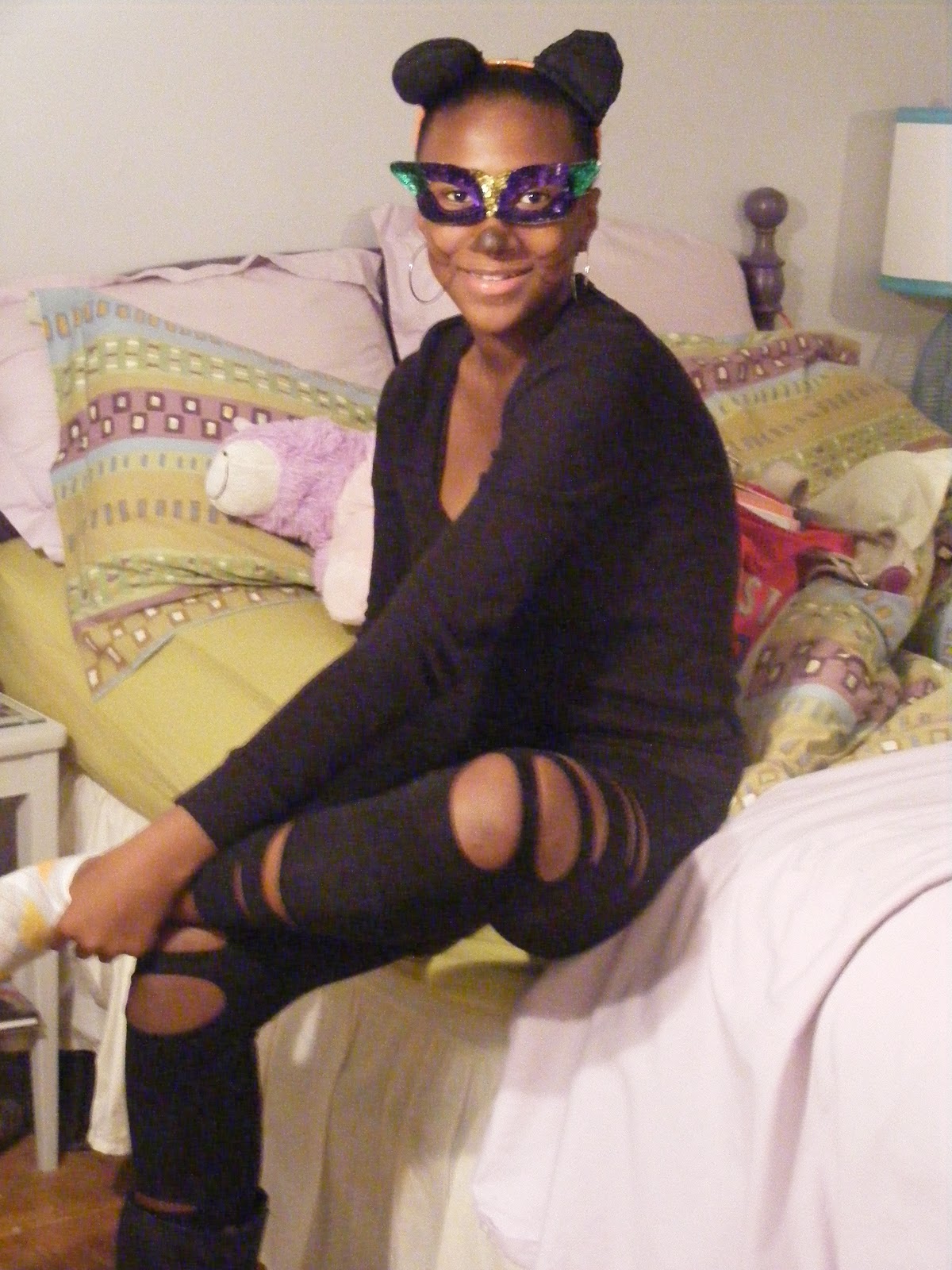 Mini's been in a "Cat Fight"...well, not exactly...She dressed up as a cat for her schools Halloween party today...Too cute...