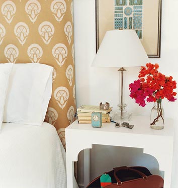 ...final note to self my first project of 2011 will be to put bookshelves on both sides of my bedroom window...and stencil the wall behind my bed...just like this...LOVE.