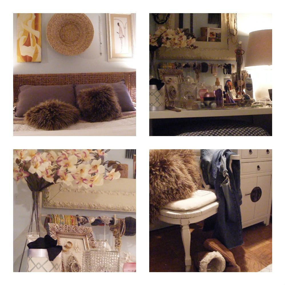I heart the pillows, so much so...I was inspired to take photos of my bedroom...Remember the pieces I purchased from the Salvation Army last summer and painted white...I had no idea what I would do with them...Hum, they found the perfect home...in my bedroom. The flowers are fake...$1.00 each from the dollar store...LUV. It's been a while since I've been to the Army...must try to make it there this week...Oh yeah, I painted Mini's bed black...looks great...stay tuned.