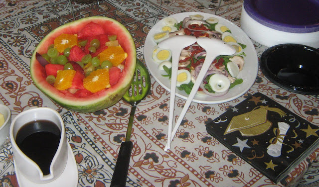 ...after the ceremony we all went back to my place and I made brunch...chicken and waffles, fruit salad, spinach salad and sangria...It was so nice...after eating we sat on the terrace and drank our red juice...It doesn't get better than that kids.