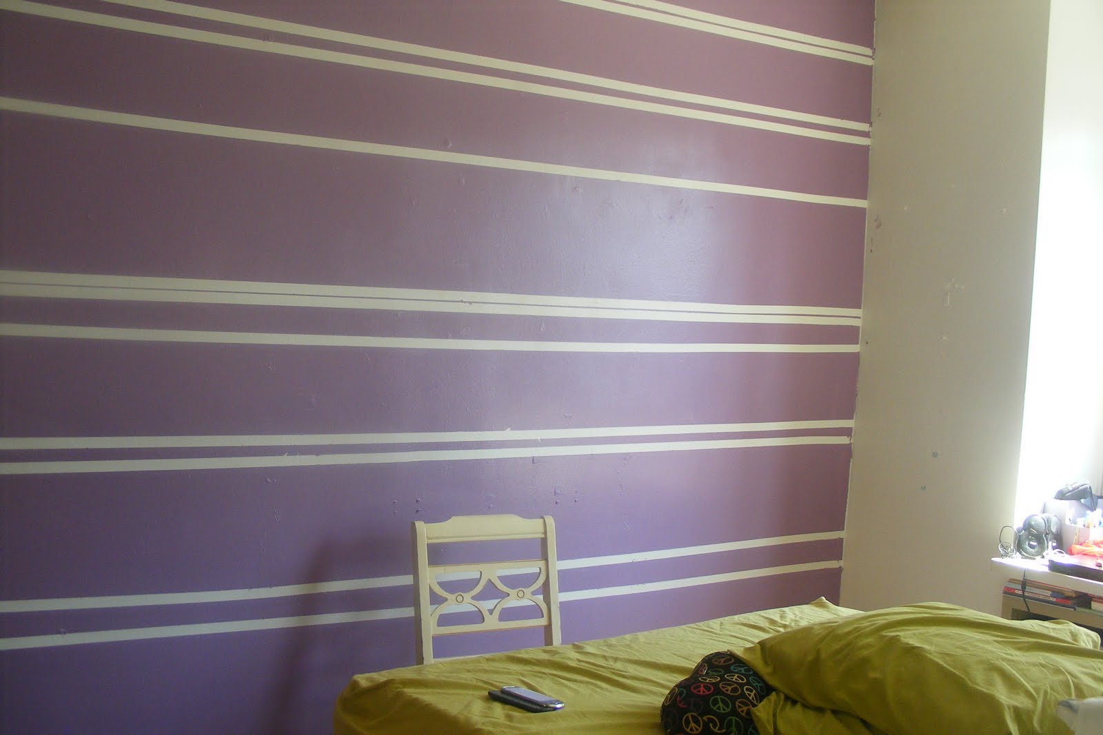 Love what you did with the wall. I'm wondering if my daughter and I will get time to make over her room before she goes back to school. What tape did you use for the stripes. Every brand I've tried either doesn't stay stuck and I get paint underneath, or I rip up the wall when I try to pull it up after.