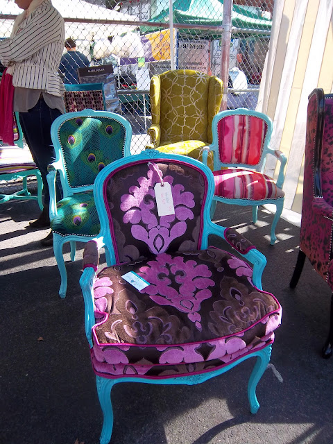 ...when Mini was done with the cancer walk on Sunday, we stopped by a flea market on the upper west side and I fell in love, with chairs. Just what I needed to see...in person. (manifest) I have been racking my brain and the Internet looking for inspiration for making over the chairs I picked up weeks ago...when, viola, I meet this lovely lady and her chairs at the flea market. They were just divine. My mind started racing and now I know exactly what I'm going to do with my chairs.