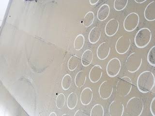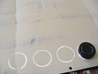 This is a very simple DIY...chose a stamp and start stamping...I wanted circles or bubbles for the bathroom so I used a bottle top. This technique can also be applied directly to the wall...How cool would that look?