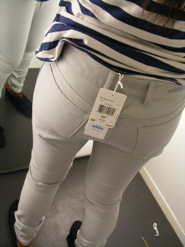 Mini tried on jeans in the Adidas store...she didn't like them...I loved them...but they did not fit my tush...