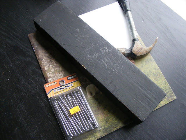 Supplies needed...extra long wood nails...a 2 x 4 cut to your desired length...a piece of chalk and a hammer...