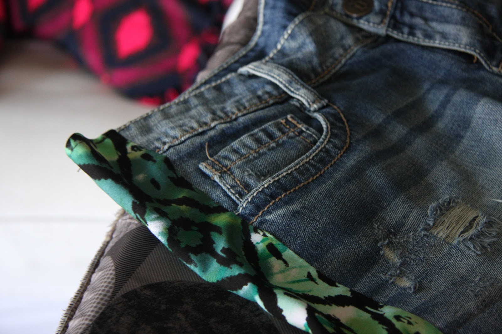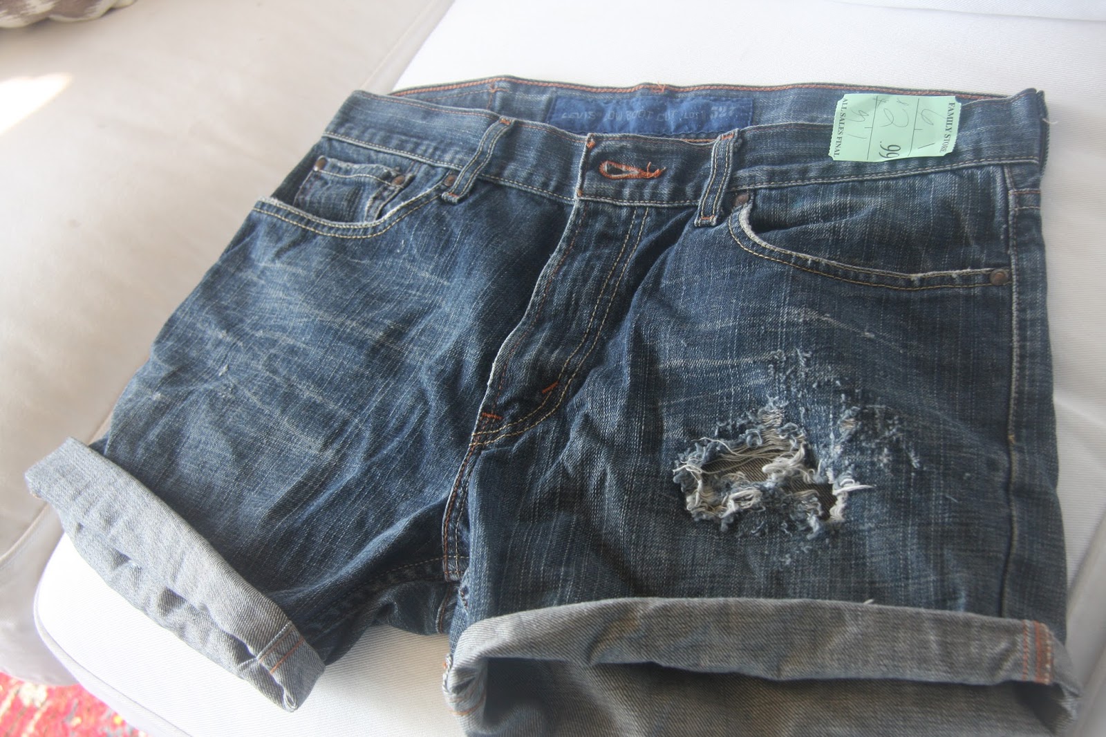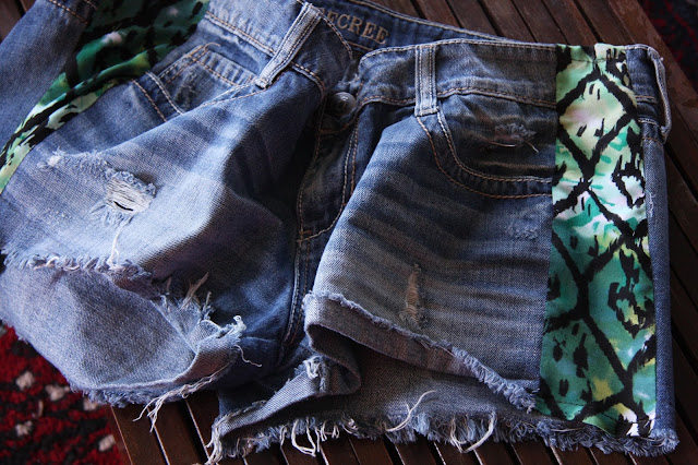 Here's a little DIY I worked on recently...remember the cut-off jeans I thrifted...