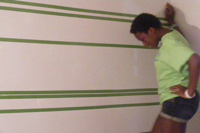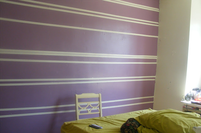 ...once Mini was feeling better...and bored...she couldn't go outside for 6 weeks...UGH! She decided she wanted purple stripes on the wall...