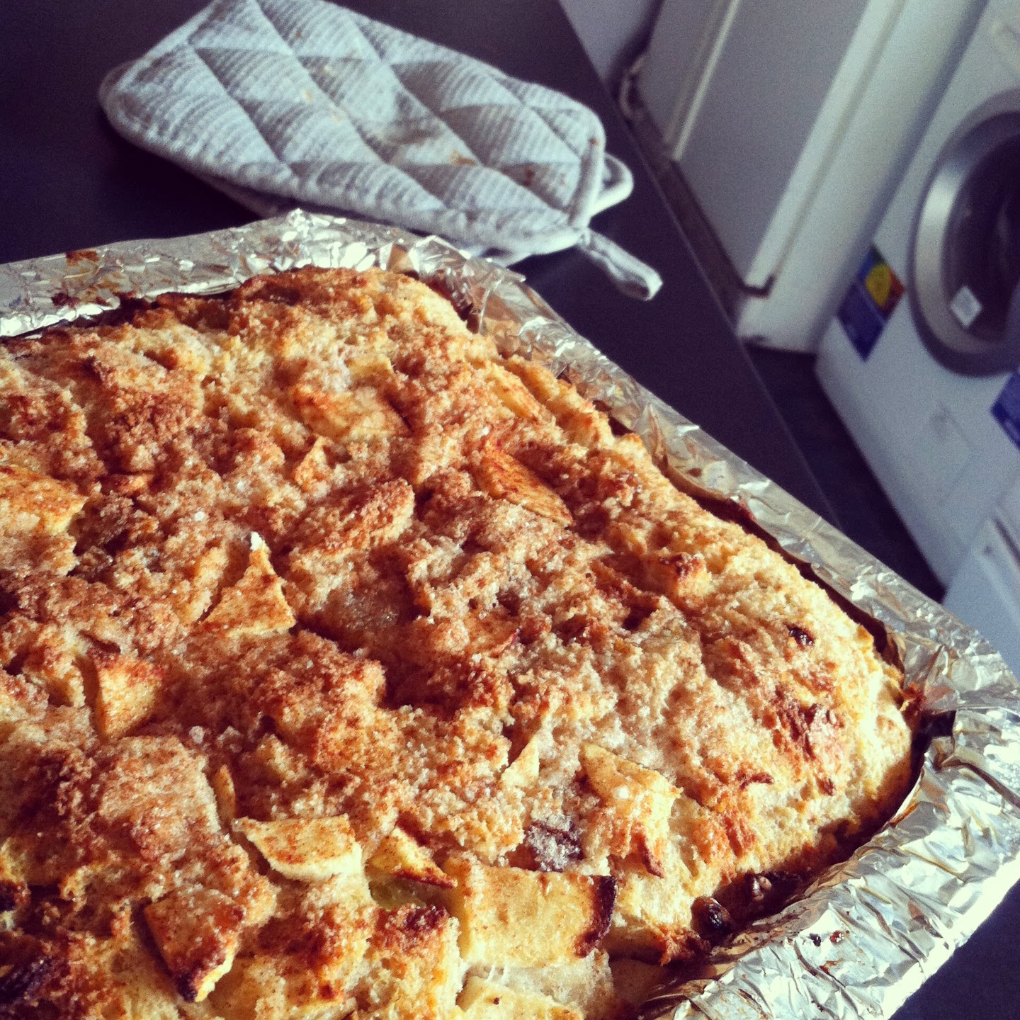 ...It snowed last night...I'm not going out...and I'm hungry...but, I don't have many options...what's a girl to do? Make bread pudding of course...