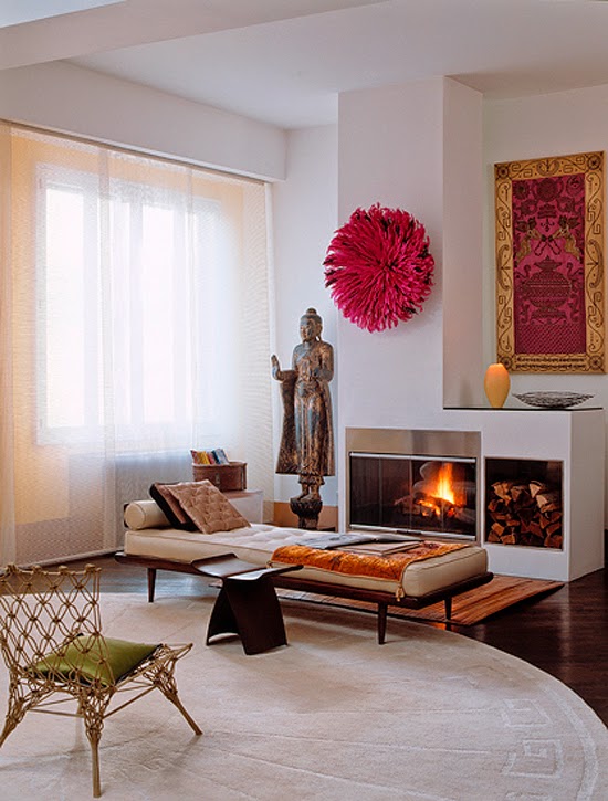 Sigh. round rug...pink accents...standing buddha...yes, yes, and yes.